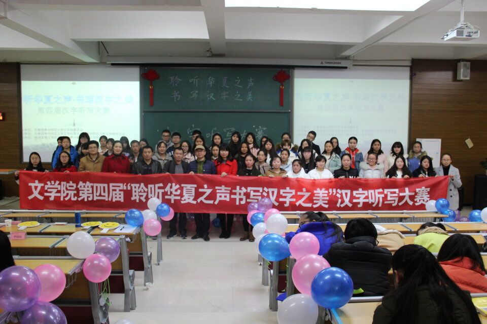 12月1日下午,文学院在花溪阶梯教室6202成功举办文学院第四届“聆听华夏之声•书写汉字之美”汉字听写大赛决赛。院党委书记刘海、院党委副书记林也婷、吴国升教授、王浩垒副教授、周思辉副教授担任活动评委,院组织员苗庆、冯加峰、李青、李国珍等老师作为嘉宾出席活动,学院2016级、2017级本科生及硕士研究生参加比赛。